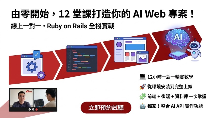 同時,AI 已成為現今開發者不可或缺的工具。課程中我會帶你認識如何正確運用 AI 技術,加速開發流程,理解 AI 在編程中的優勢與限制,並學習如何閱讀與優化 AI 生成的程式碼。