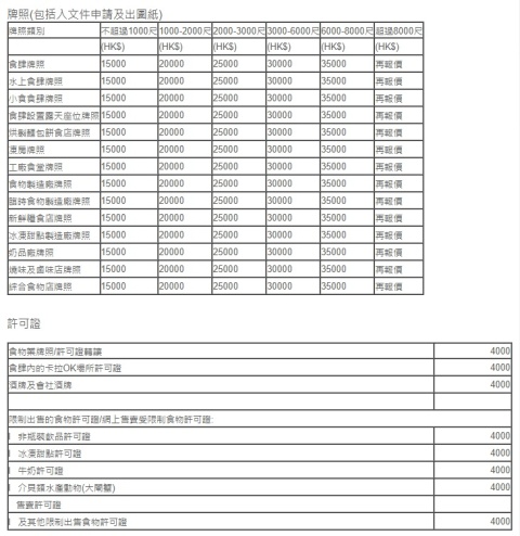 l 臨時食物製造廠牌照 l 新鮮糧食店牌照