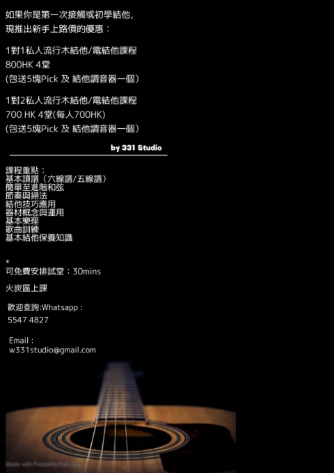大家好,本人為英國RSL 註冊結他導師並考獲Rockschool Electric / Acoustic Guitar Grade8,曾畢業於HKDI數碼音樂及媒體高級文憑,曾於多間的琴行,會所教授結他,8年教授經驗,14年彈奏經驗 ,本人以簡單易明的教學方式令學生更快掌握結他的技巧和知識。亦參與商場/酒吧演出的經驗
