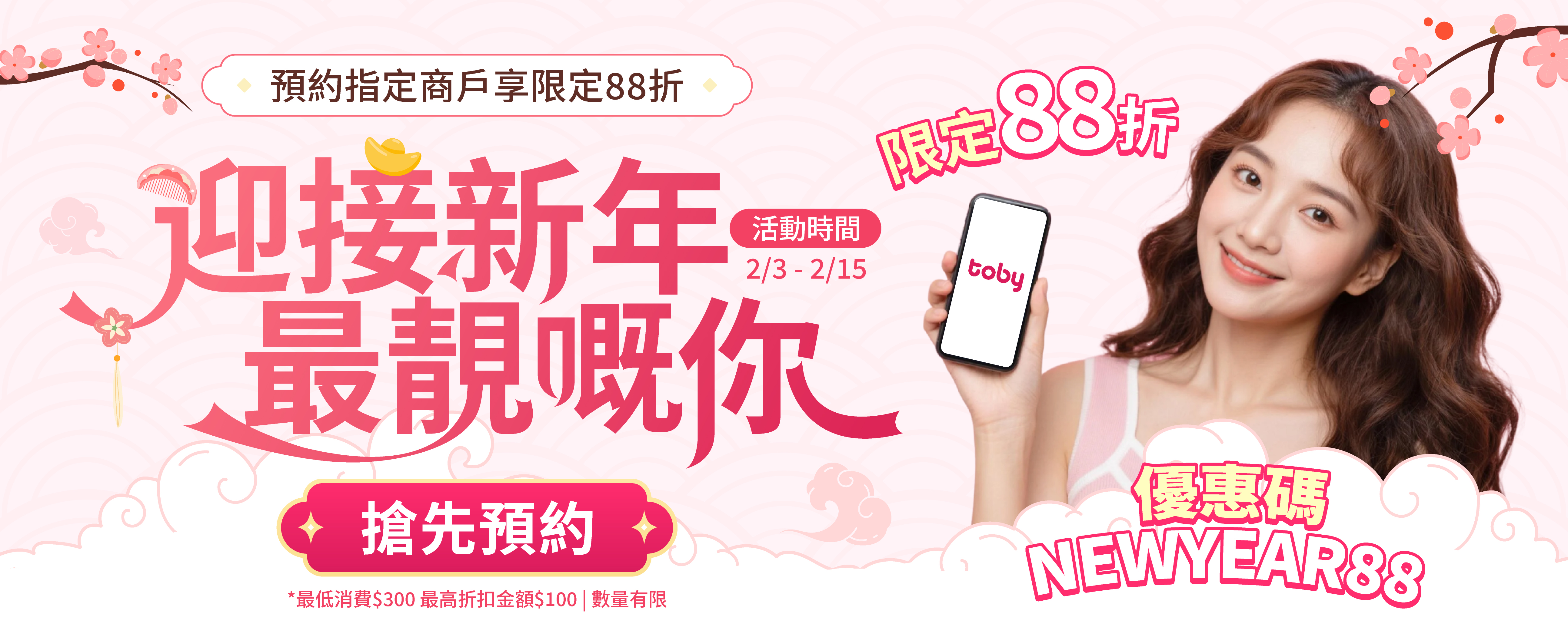 預約指定商戶,買滿$300 輸入優惠碼【NEWYEAR88 】即享88折優惠