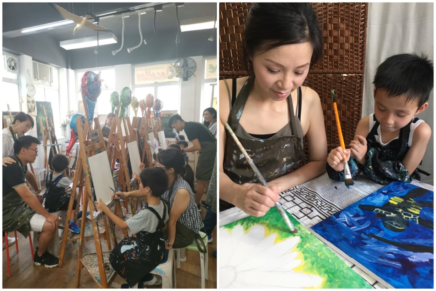 本畫室致力提供適合不同年齡與水平的藝術課程,例如:成人油畫班、水彩班、寵物素描班 、國畫及中文書法班、英文書法工作坊及人體素描等課程。不管您是初學者或是有繪畫經驗的學生,都歡迎加入我們並發揮您的創意!我們亦提供包場服務,給予客人舉辦生日會,或是給企業進行team building活動!