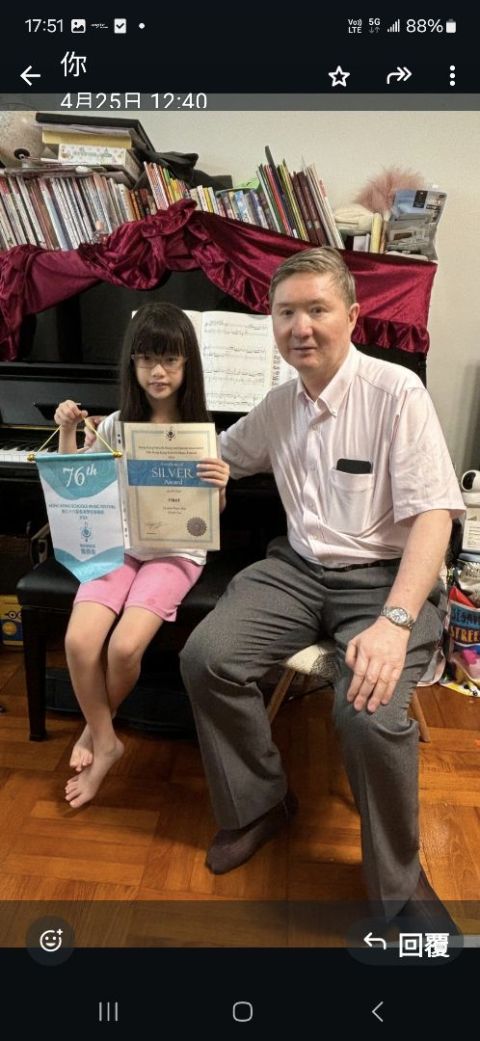 前任香港小交響樂團第一小提琴手。有30年舞台演出和教學经驗,本人教的學生在校際音樂節比賽小提琴和鋼琴都得到第二名,同一個學生,今次在校際音樂節比賽的鋼琴得到冠軍,保送英國皇家和聖三一,一级至演奏级音樂試,保送香港演藝學院入學試,保送香港青少年管弦樂團入團試 984***06 卓生,上門教
